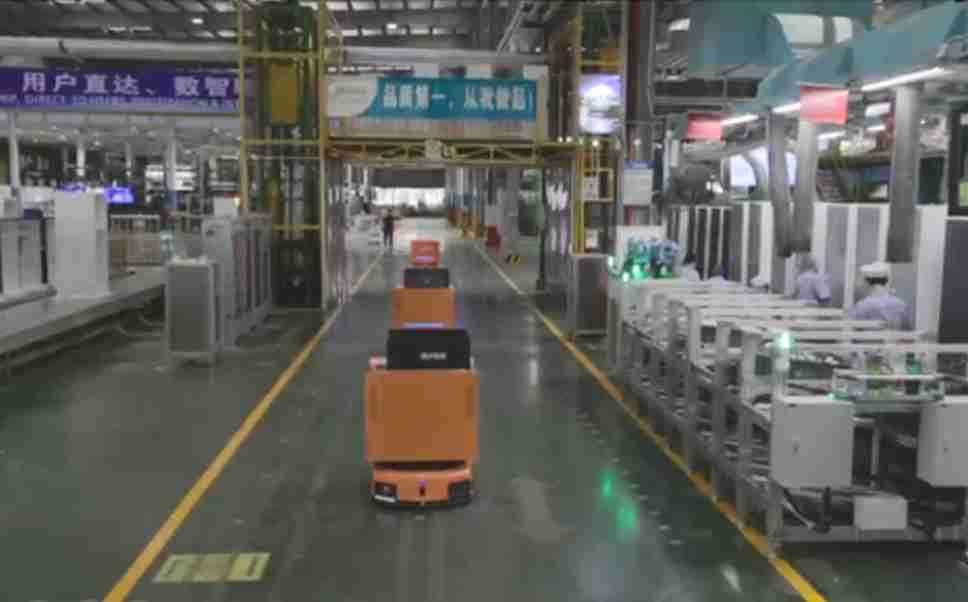 为车载冰箱物流配送打造的智能解决方案,,包含产中物流通过潜伏举升AMR搬运至线边,,,,产后成品物流智能仓储,,,流程包含产中物流智能齐套入库,,,,线边安灯叫料AMR智能配送至线边,,,成品入库、、、、出库,,,,通过无人堆高车机器人,,,智能仓储管理替代人工作业管理,,,,实现更高存储、、、、更高效率、、、、更具柔性化的解决方案。。。